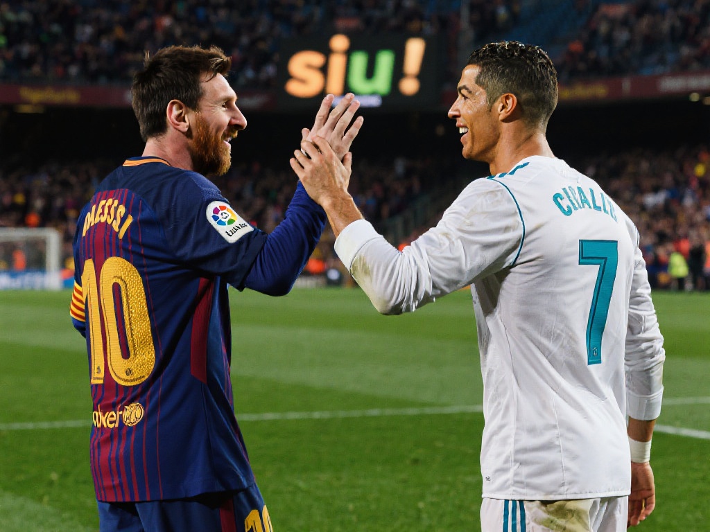 当梅西遇上“siu”:球场上的偶像对决与粉丝狂热 每当梅西与C罗的名字出现在同一个对话中,足球世界的氛围总是充满了无法忽视的紧张与兴奋。在这场球场与情感的较量中,一位对手在梅西的比赛中上演了C罗标志